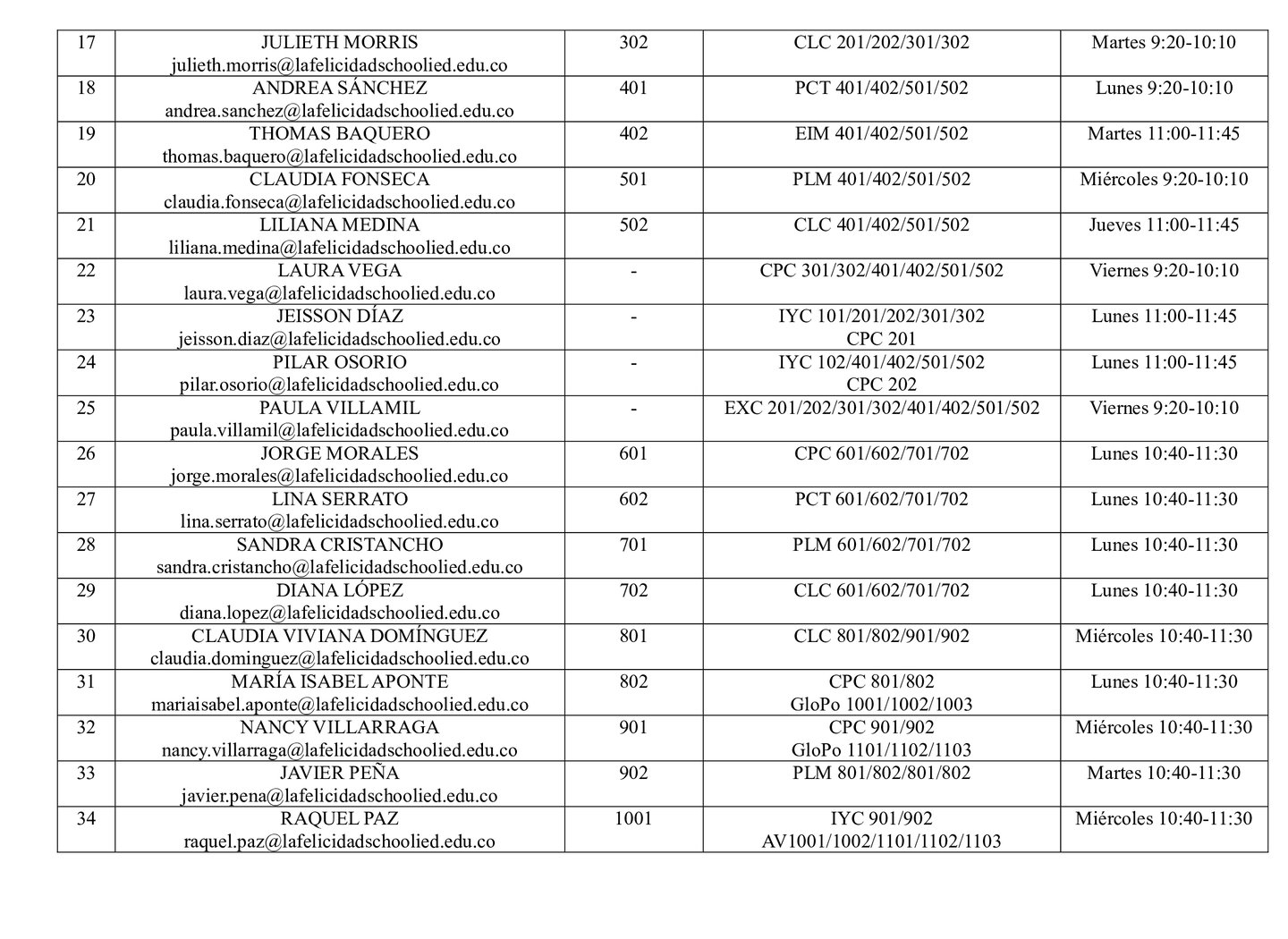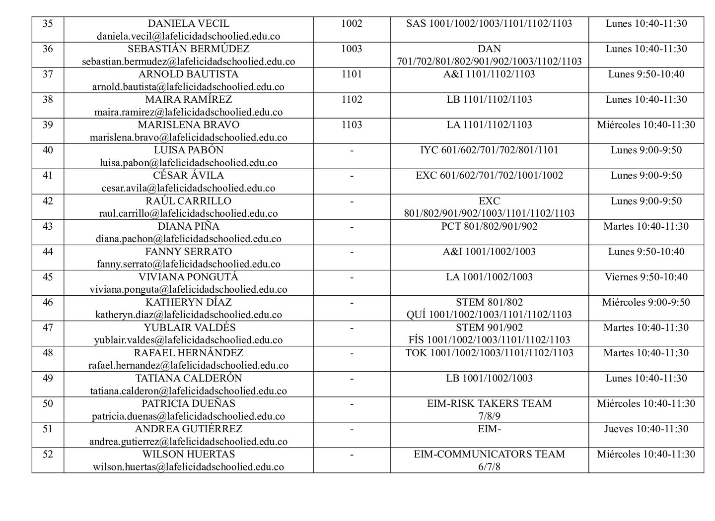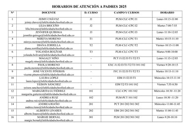 HORARIO DE ATENCIÓN A PADRES 2025
