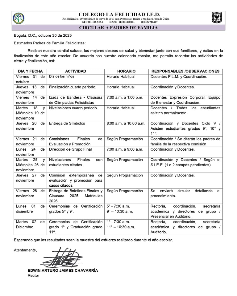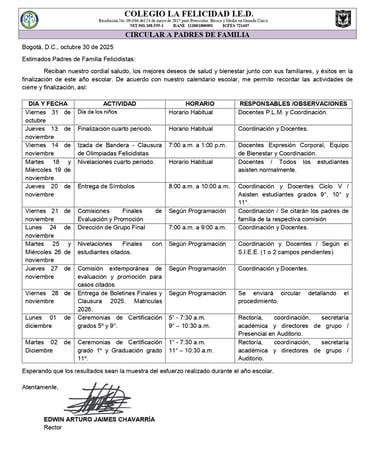 COLEGIO LA FELICIDAD I.E.D. (Preescolar, Primaria y Bachillerato)