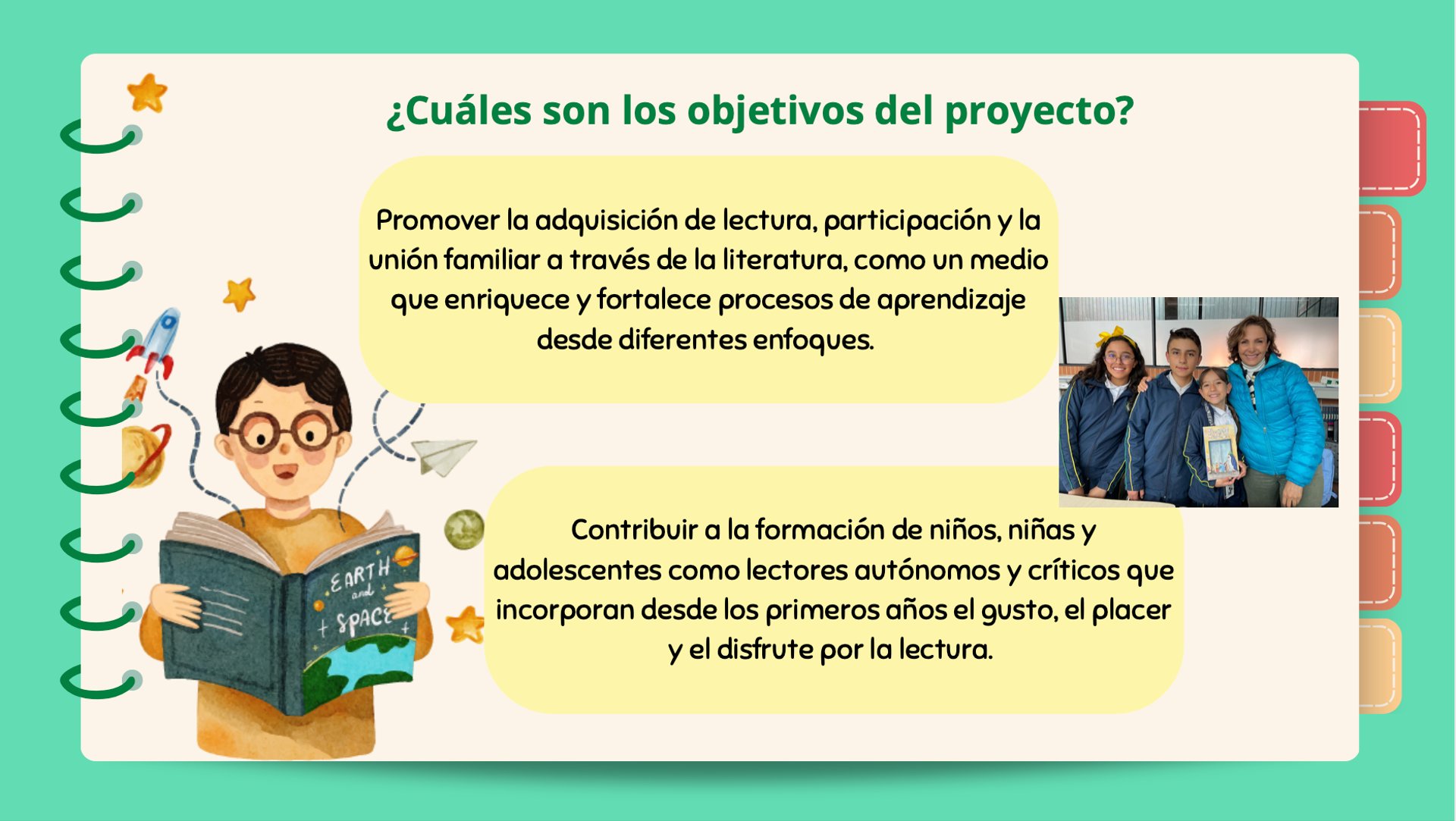 De este modo, proponemos planear y ejecutar, desde nuestras clases, actividades que involucren a las familias en torno a la lectura y partiendo del gusto, del deseo por leer y del placer de compartir en familia. Respondiendo así mismo a las edades de cada ciclo que tienen sus características particulares y dinámicas específicas para proponer a las familias y que respondan a las necesidades de cada uno, tanto de las familias cuyos integrantes son lectores consumados, como de las familias que leen sólo por obligación o por necesidad.